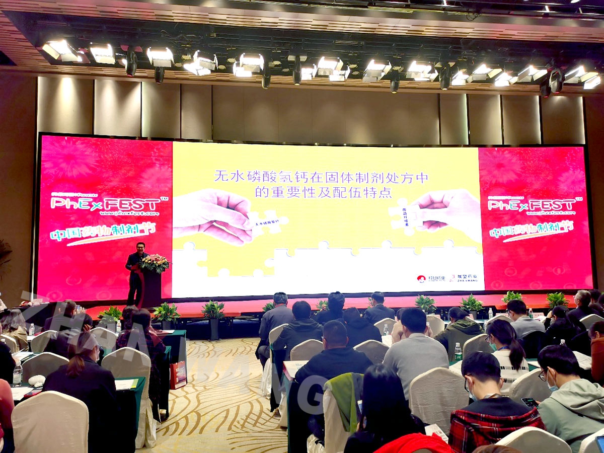 展望藥業(yè)作為此次“PhExFEST中國藥物制劑節(jié)”的鉑金協(xié)辦方在展位布置、產(chǎn)品引領(lǐng)、主力協(xié)辦、技術(shù)宣講等方面獨樹一幟、獨領(lǐng)風(fēng)騷,與南京威爾等35家國內(nèi)知名藥輔制造商(含部分儀器商)共同推進中國輔料的發(fā)展及輔料技術(shù)的進步。同時,湖州展望藥業(yè)有限公司技術(shù)服務(wù)部經(jīng)理葉永超對無水磷酸氫鈣在固體制劑處方中的重要性及配伍特點進行輔料研究及輔料應(yīng)用進行專業(yè)講演及匯報。