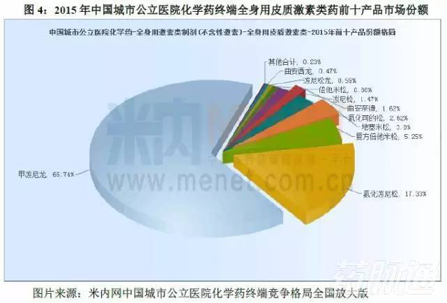 在臨床上使用的糖皮質(zhì)激素類藥物種類很多,不同的糖皮質(zhì)激素類藥物在臨床上的療效不同。其中,甲潑尼龍具有起效迅速、抗炎活性強等優(yōu)勢,是一種用途廣泛的糖皮質(zhì)激素類藥物。我國獲得注射用甲潑尼龍琥珀酸鈉生產(chǎn)批文的企業(yè)包括了天津金耀藥業(yè)、國藥集團容生制藥、重慶華邦制藥以及遼寧海思科制藥。甲潑尼龍的生產(chǎn)廠家不算太多,其中比較有名的是輝瑞制藥,由米內(nèi)網(wǎng)數(shù)據(jù)可知,2015年輝瑞制藥生產(chǎn)的甲潑尼龍占據(jù)78.8%的份額,國內(nèi)企業(yè)中國藥容生制藥占比較大,為9.99%。
