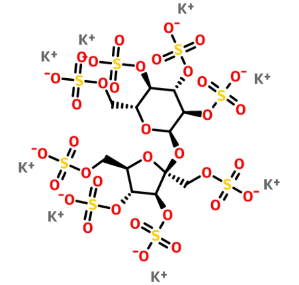 蔗糖八硫酸酯鉀是一種化合物。它是由蔗糖經(jīng)過硫酸酯化反應(yīng)得到的。