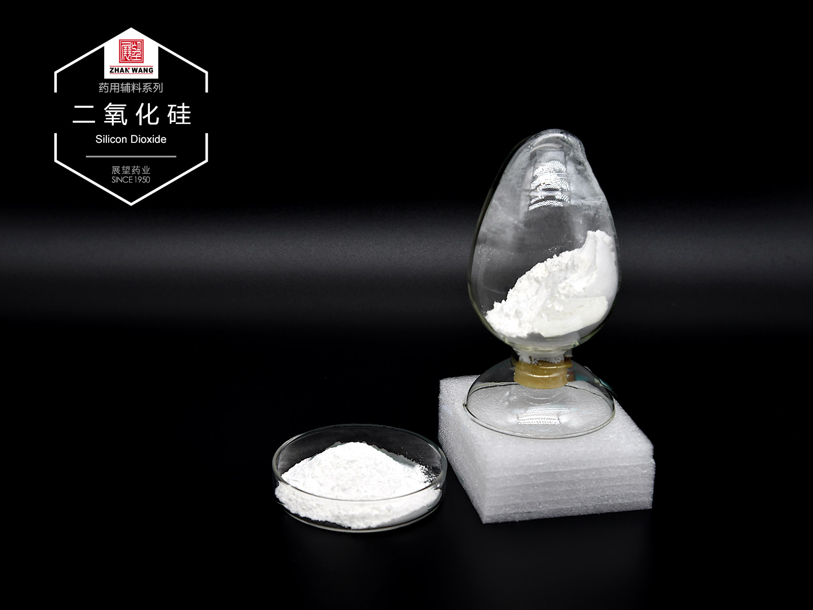 本品比表面積大,有很好的流動性,對藥物有較大的吸附力,其親水性能強,用量在1%以加速片劑的崩解,且崩解得極細,有利于藥物的吸收。本品用作助流劑一般濃度為0.15-3%。本品對油類、滑膏類藥物特別適宜。用其配制成的顆粒,具有很好的流動性和可壓性,很少出現(xiàn)流動不暢和粘沖現(xiàn)象。