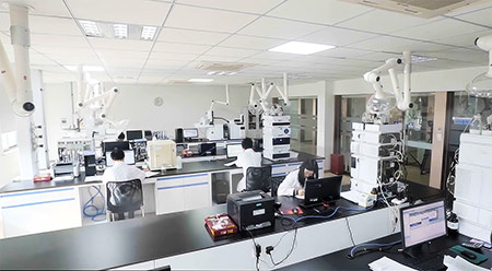 化驗(yàn)室面積達(dá)到1600平方米,做到布局合理、各室齊全,配備了滿足產(chǎn)品檢驗(yàn)需要的檢測(cè)儀器,并通過(guò)計(jì)量部門(mén)定期檢查和校驗(yàn),保證其準(zhǔn)確性,能確保原輔材料、包裝材料、中間體和成品的日常檢驗(yàn)。